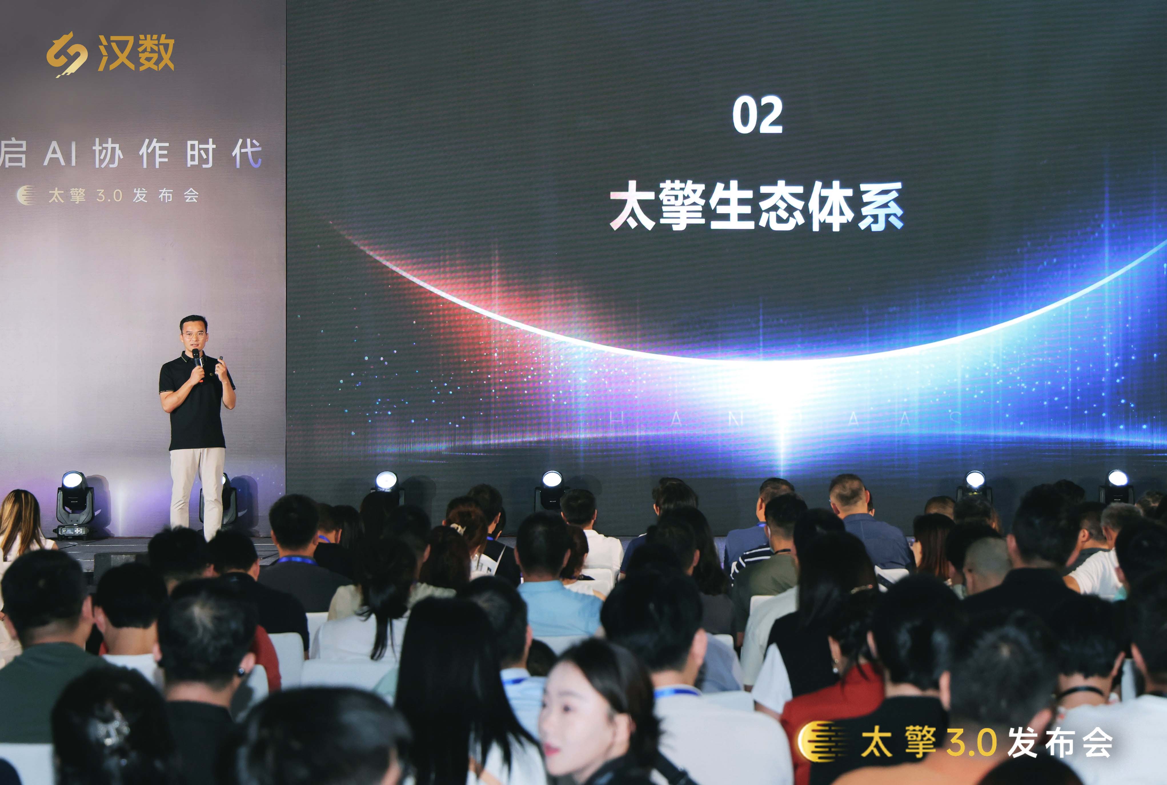 会上,汉数科技创始人陈开冉详解太擎平台的迭代升级路径,系统阐释「太擎 3.0」如何在销售、服务、管理三大核心场景中实现人与 AI 的高效协作,助力企业把握 AI 技术红利,抢占市场先机。