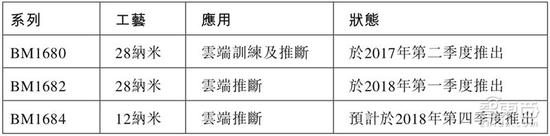第三代AI芯片BM1684采用12nm工艺,同样应用于AI云端推理,但预计2018年Q4才会推出。