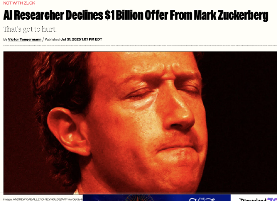 顶级人才关系到公司的技术研发实力,更直接关系到AI大战的实力,关系到科技巨头们的市场估值。因此,各家公司都将AI人才视为了核心竞争力,诸多超级大佬们更是直接在社交平台上挖人。根据媒体报道,扎克伯格甚至亲自出马挖OpenAI的研究负责人马克·陈,开口就是“十亿美元你愿意考虑一下吗?”