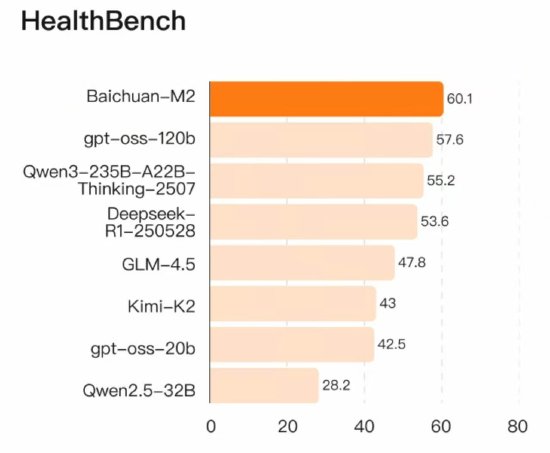 据悉,Baichuan-M2在HealthBench上得到60.1分,以32B的较小尺寸不仅反超OpenAI 最新开源模型gpt-oss120b(得分57.6),力压Qwen3-235B、Deepseek R1、Kimi K2等开源大模型。
