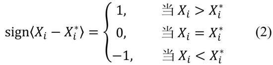 其中,F即为单身狗返乡过年期间遭受的瞬时压力,N为大龄青年的年龄,Ne为大龄青年结束中学教育的年龄(一般指高考年龄),a为学历因子(a>1, 且学历越高,该因子取值越大),Xi表示集合X中第i项元素的数目,Xi*为该项数目在周围同龄人中的平均值,sign为方向函数,定义如下: