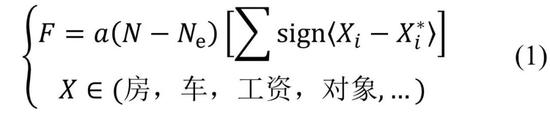 显然,集合X具有显著的物质属性,它并不决定于物质之外的因素,也就是说,一个青年品性如何、才华如何、见识如何、阅历如何,均不会对X产生影响。根据上述定义,对单身狗而言,X对象=0;就对象数目而言,由于有的人有对象,有的人没对象,且鉴于我国实行一夫一妻制的客观事实,X对象的平均值必属于开区间(0,1)。该模型解释如下:根据力学理论,当F<0时,受到的是压力;反之,本文将其定义对外界输出的压力。假设有一理想大龄青年张三(大龄意味着N-Ne>0),不论Xi指向房、车、工资或是对象,若Xi取值都低于周围同龄人平均值Xi*,则F返回值为负,该研究对象就会受到来自外界的巨大压力,如图1所示: