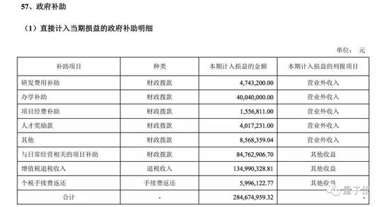 其中,讯飞备受外界关注的政府补助方面,2018年计入损益的补助总额达2.85亿元,占净利润52.58%。