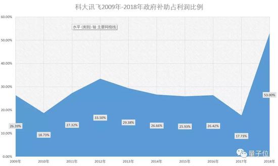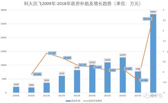 2018年年报中,讯飞获得政府补助总额2.85亿元,占比净利52.58%,意味着半数净利所得,离不开政府补助。