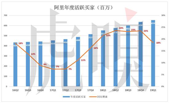截至2019年3月31日,年度活跃买家达6.54亿,较2018年末净增1800万。