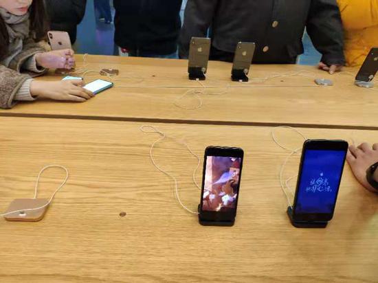 记者在现场观察到,由于iPhone 6系列产品由于上市较早,苹果专卖店早已不销售该产品,而iPhone X在今年新一代产品上市时也已下架。
