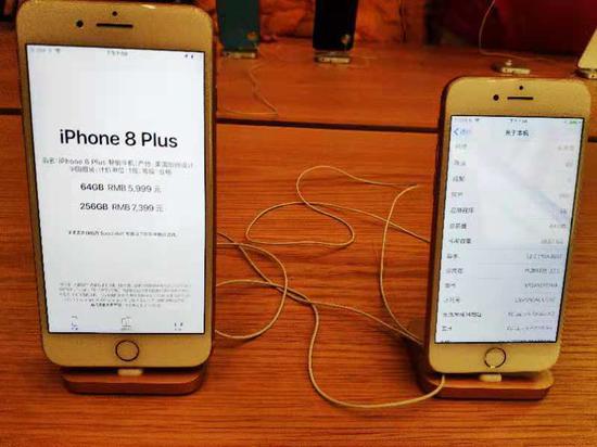 对于涉及禁售的iPhone7和iPhone8两个系列产品,多位现场的导购员告诉记者,目前并未收到有关禁售的通知,“官方文件没下来,如果今天早上早会通知不卖了就不卖了,不会有缓冲期。” 而在专卖店内,所有销售的iPhone产品中系统均升级至iOS 12。