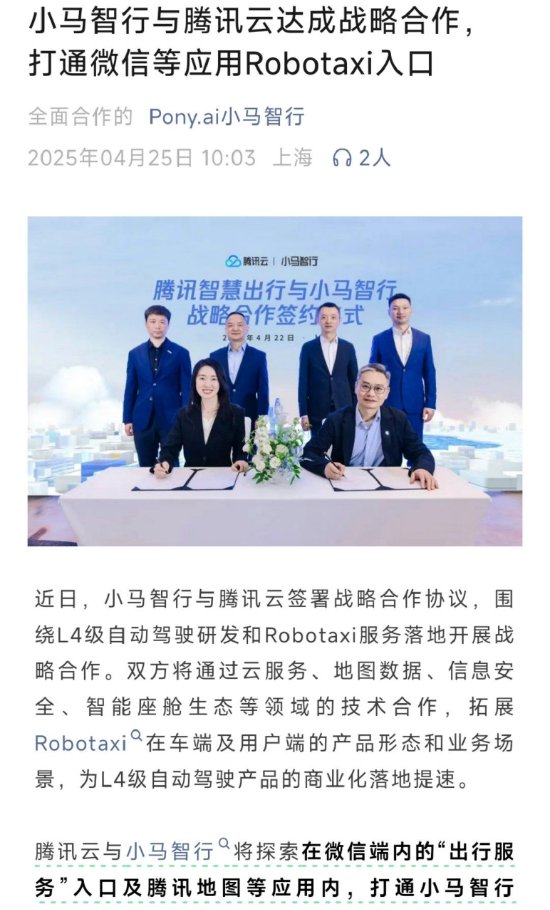 小马智行与腾讯云将打通微信等应用Robotaxi入口