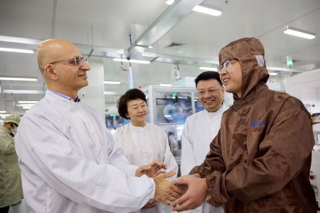 Apple COO Sabih Khan 与瑞声科技董事长潘政参观瑞声科技位于江苏常州的均热板模组生产工厂