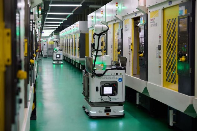 蓝思科技则在智能制造领域打造标杆。泰州工厂的CNC精细加工区,自主移动机器人(AMR)凭借自主感知与自适应能力,实现主动上下料与智能任务调度,配合高精度手眼二次定位技术,大幅降低人为失误;