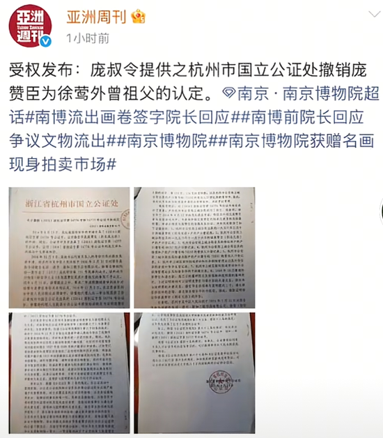 2016年,杭州国立公证处就发布了“对徐莺撤销庞赞臣外曾孙女的认证”。