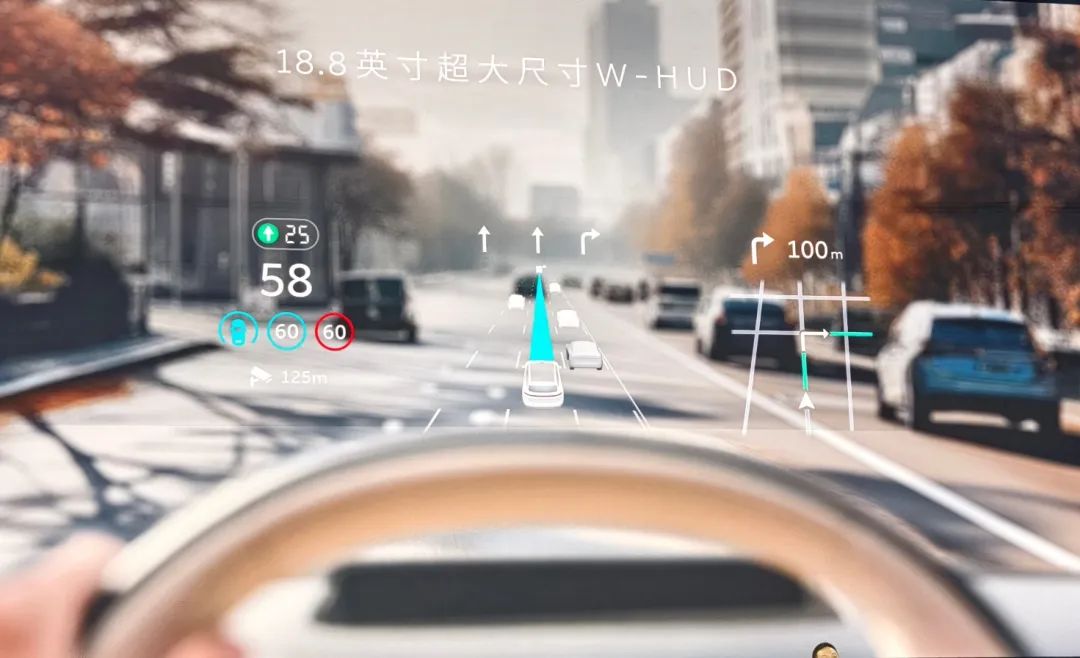 行车时升级了18.8英寸W-HUD,能显示道路、车辆和辅助驾驶SR图像等信息。