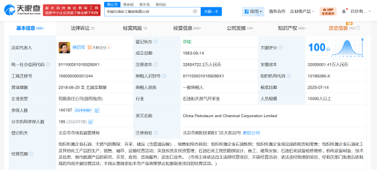 7月16日,天眼查App显示,近日,中国石油化工集团有限公司发生工商变更,马永生卸任法定代表人、董事长,由侯启军接任。该公司成立于1983年9月,注册资本约3265亿人民币,经营范围含组织所属企业石油、天然气的勘探、开采、储运、销售和综合利用,组织所属企业石油炼制,组织所属企业成品油的批发和零售等。