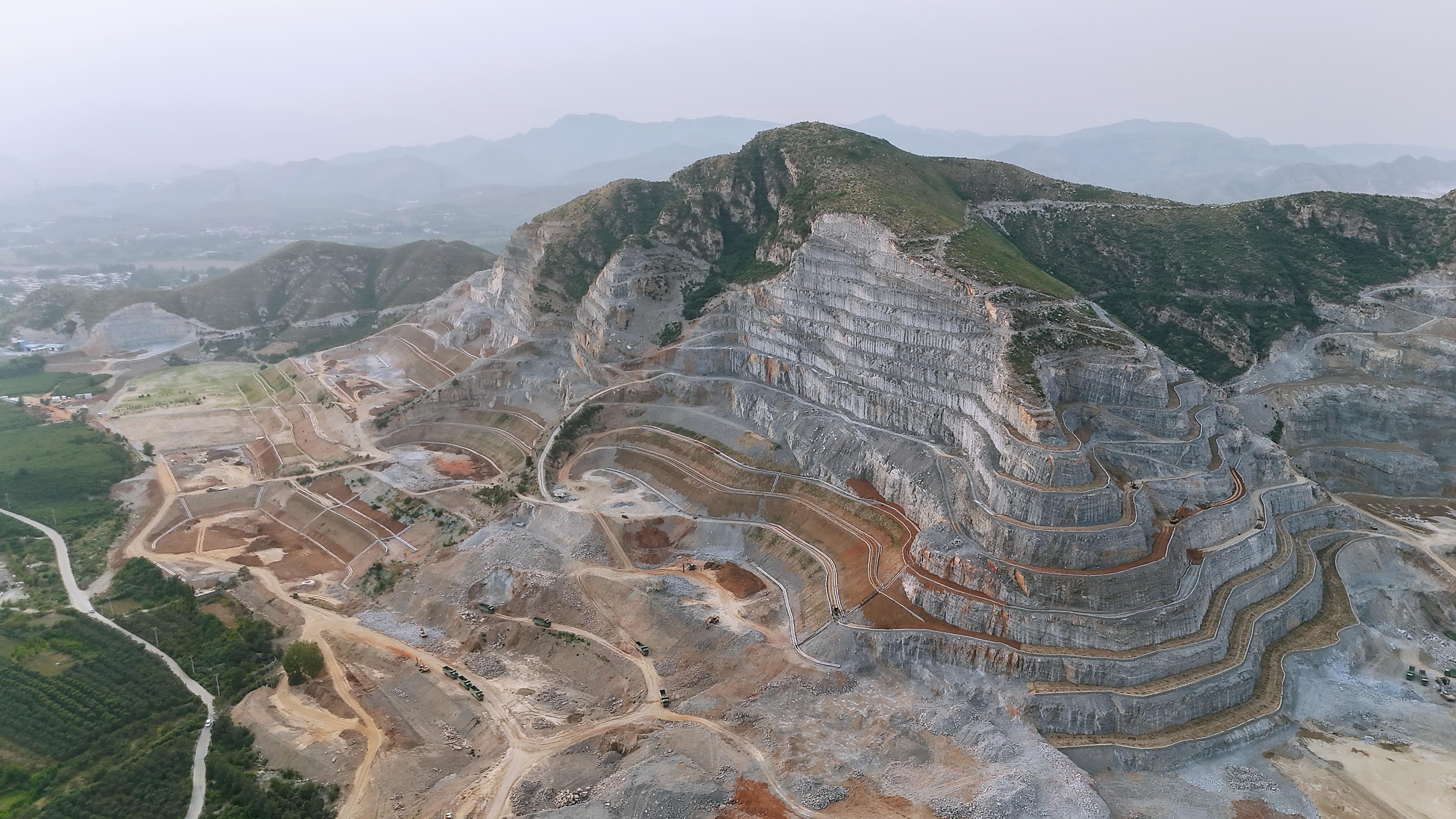 在满城区李家佐村与玉山村之间,一片曾遭开采重创的白云岩山体群正经历一场改写开采方式的革命——“纵切变横切”。刘芳点破精髓:传统纵切形成高陡边坡,修复困难;而这种水平分层开采则使山体形成大平层,从源头减少修复压力。