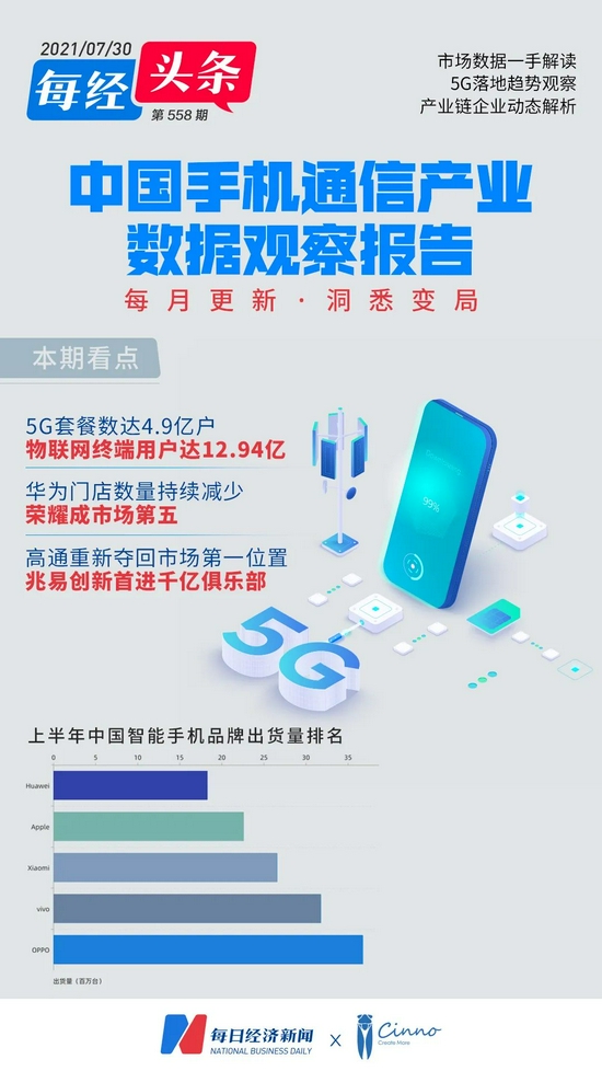 自2021年3月起,每日经济新闻联合第三方数据机构CINNO Research,每月持续发布《中国手机通信产业数据观察报告》(简称手机通信产业观察)。报告持续关注三大运营商、手机品牌商、手机供应链最新数据,长期追踪和洞察中国手机通信产业链发展趋势。