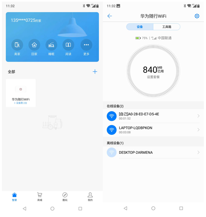 华为“智能家居”APP便携管理华为随行WiFi 2 畅享版