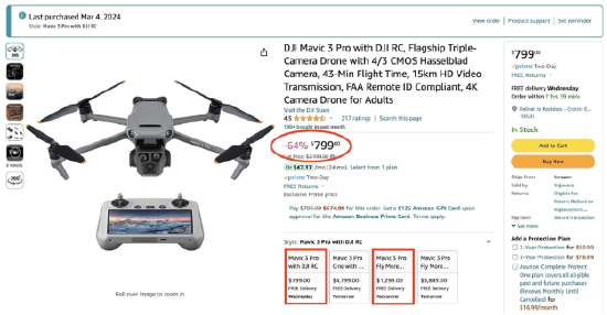 大疆已经在美国市场进行了两波大涨价。最受欢迎的Vlog机器Pocket 3上个月从519美元涨至619美元,然后这个月又提升到799美元。不到两个月时间内上涨了280美元,涨价幅度高达54%。值得一提的是,大疆的涨价举措只针对美国市场。