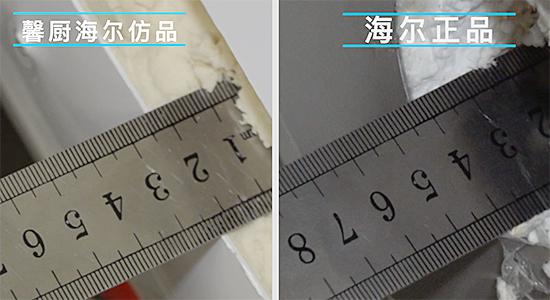 再来看保温发泡层,拼购热水器的发泡层质地不是很均匀,厚度也仅有两厘米左右,对比海尔正品电热水器四厘米的厚度,其保温能力值得怀疑。