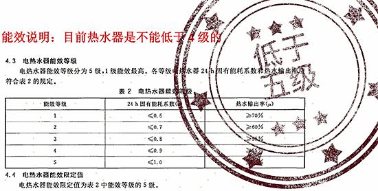 看了拼购电热水器的用料和做工之后,求真君对其测试的结果已经有了心理准备。果然,在能效测试中,该机的表现一塌糊涂,测试中每三个小时就要重新启动加热,其24小时固有能耗系数为0.74,热水输出率仅为37.1%,经测算该电热水器的固有能耗等级低于5级,而在国家标准中,目前热水器是不能低于4级的。