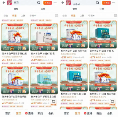 《酒业内参》在老白干淘宝旗舰店发现,作为主推的高端大单品老白干1915三款产品平均销量约100单,而售价200元上下的青花手酿、手酿及对应的礼盒包装几乎包揽了店铺销量榜的前五名。从此也不难看出,老白干的高端尚未见明显成效。