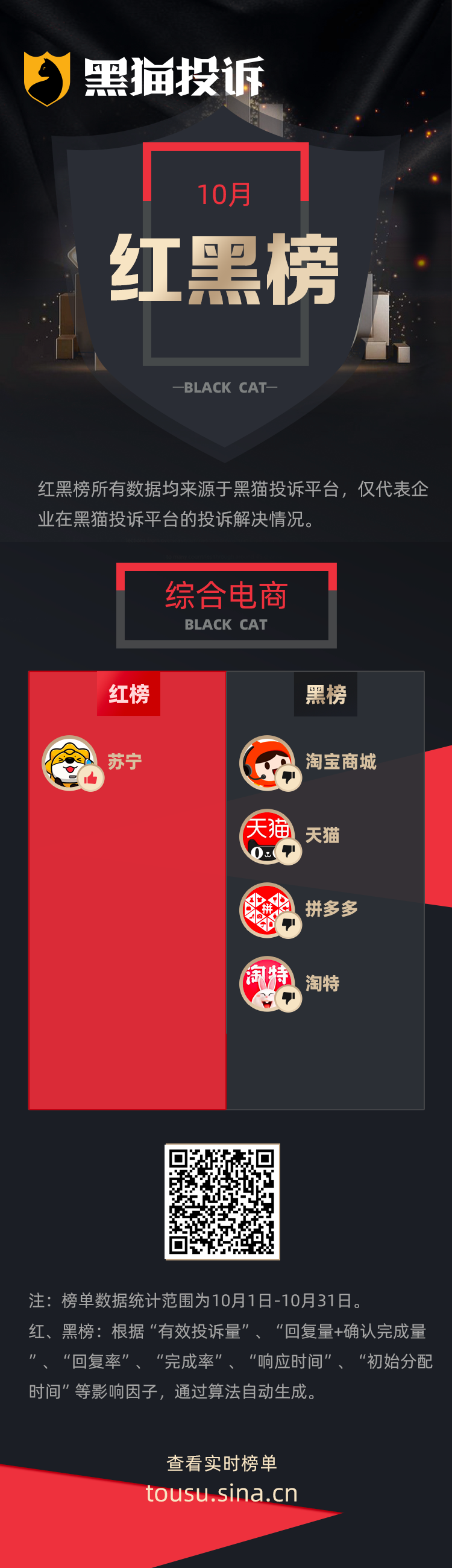 黑猫投诉 发布10月企业投诉处理红黑榜单,数据均来源于黑猫投诉平台,反映了企业在黑猫投诉平台的投诉处理解决情况。