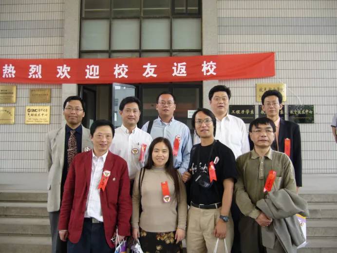 ▲ 丁小平参加清华大学校庆与同学合影留念(后排左一丁小平)