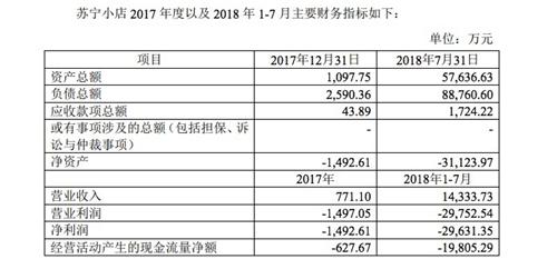 不过,规模是有了,但是随之而来的却是巨额亏损。10月15日,苏宁易购对外发布公告称,将亏损中的苏宁小店从上市公司剥离,以减轻公司的业绩压力。根据公告披露的数据显示,截止2018年7月31日,苏宁小店净资产为-3.1亿元,2018年前7个月净亏损达2.96亿元。