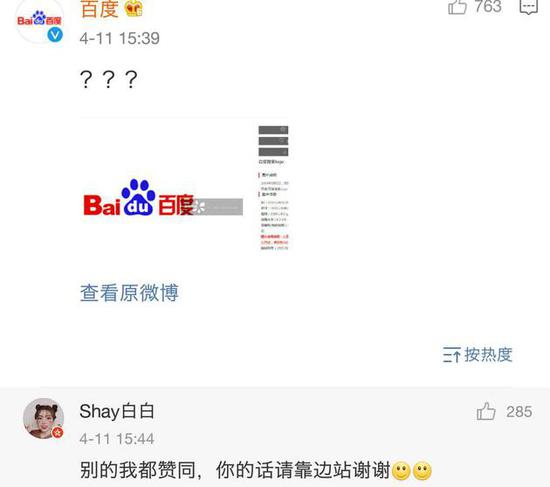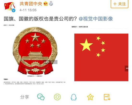 此消息一出,共青团中央官方微博质疑并配图称,“国旗、国徽的版权也是贵公司的?”之后,百度、联想、海尔、360、苏宁易购等纷纷在其官微下配图留言互动。(云红)
