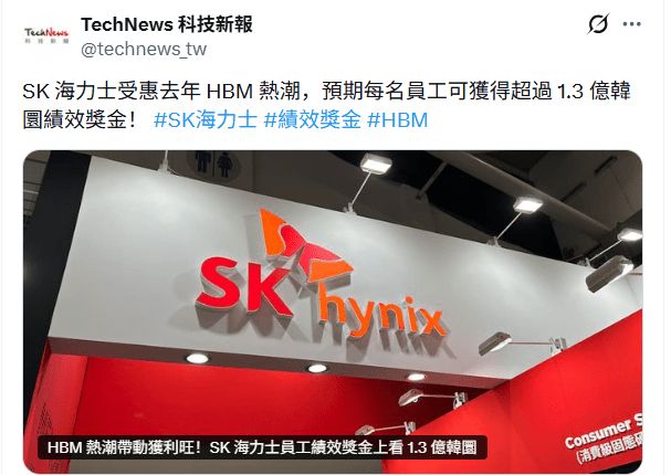 这是韩国巨头SK海力士刚刚宣布发给员工的平均年终奖(1.36亿韩元)。