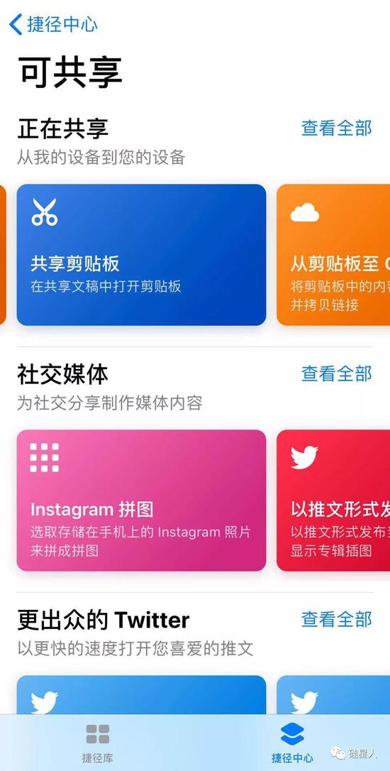 如果觉得自己制作捷径太麻烦,操作太复杂,还可以从捷径中心寻找他人制作好的捷径。甚至可以在捷径编辑页面,把自己做好的捷径分享给朋友们。