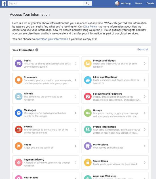 Facebook推出了一整套方便使用的个人数据工具。用户可以控制自己的数据被谁看到、和谁分享、被如何使用,还可以很方便地搜索、删除和下载自己的个人数据:https://www.facebook.com/privacy/ 全球用户皆可使用。