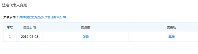 3月11日上午消息,企查查数据显示,杭州阿里巴巴创业投资管理有限公司3月8日发生工商信息变更,阿里巴巴集团CEO张勇不再担任阿里创投管理公司法人以及董事长,阿里巴巴B2B事业群总裁戴珊接任。
