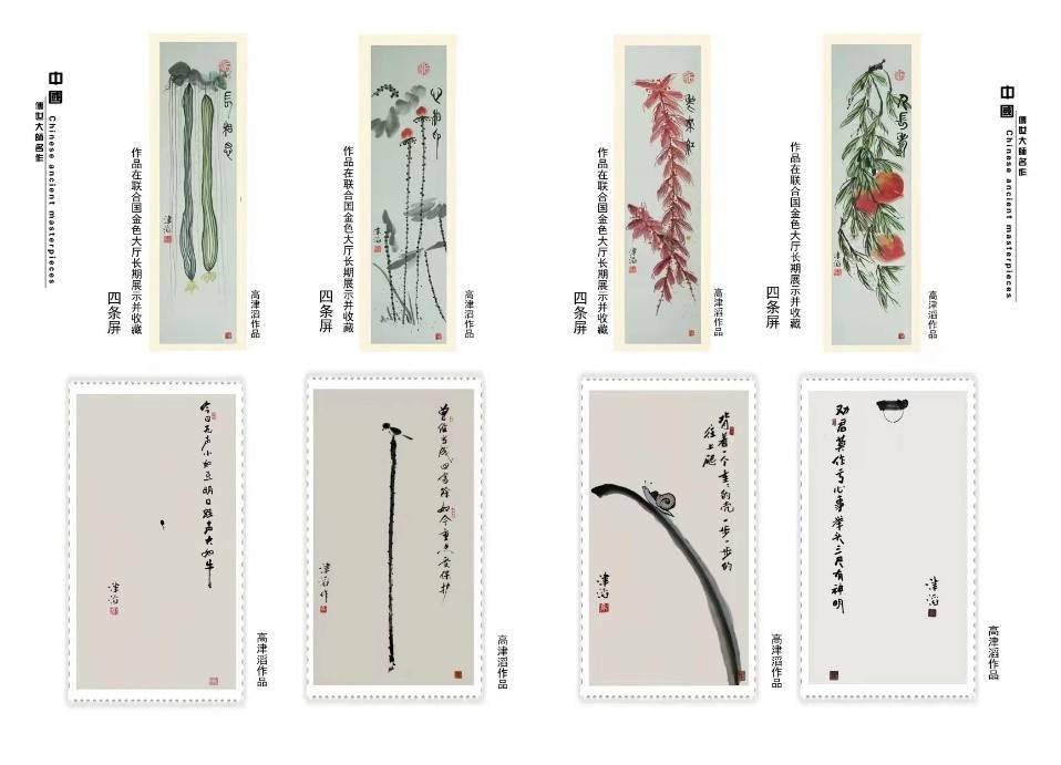 2012年6月,高津滔创作的书画作品四条屏《长相思、心相印、老来红、人长寿》被联合国总部金色大厅长期展示并收藏。
