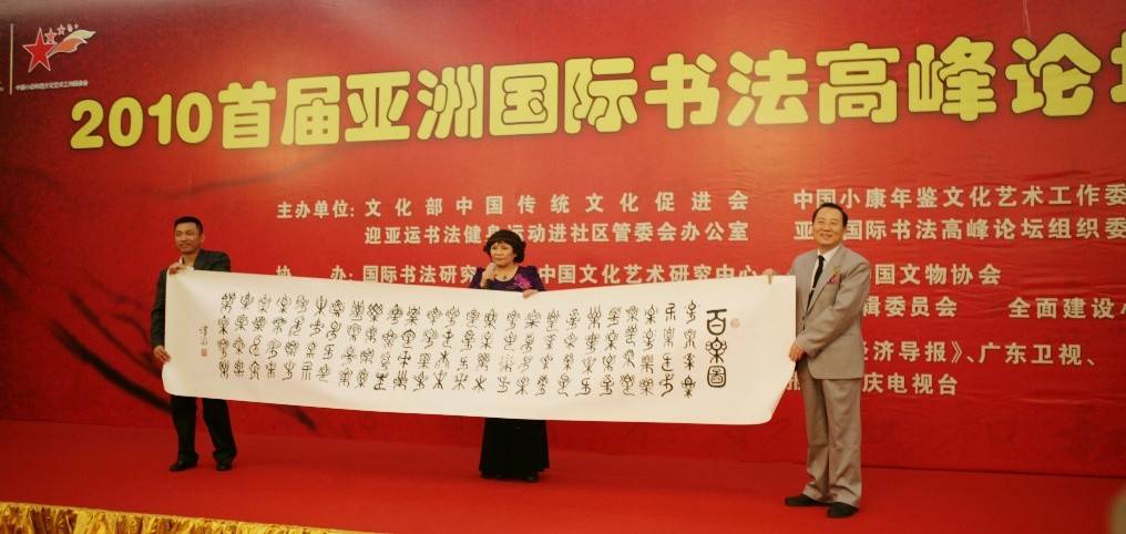 2010年参加亚运会书法火炬传递和亚运会国际书法论坛,主持了圆桌会议,作了“笔墨当随时代,创新自我用法——法童体书法的感悟和实践”的发言,被授予“亚洲最有价值书画家”称号。
