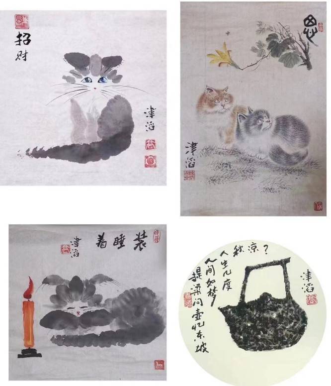 高津滔原本有做官的机会,但他却痴迷于书画艺术,多年来把工作之余的大部分时间,用在了探究中国传统文化,研习书画艺术上。结果,仕途上少了一个官员,艺坛上出现了一位有独异艺术才情的书画大家。如今他的书画作品已有多幅被中国和外国博物院馆收藏,不少作品被收进各种版本的书画作品集,一些被作为国礼送给外国政要人物;他本人获得了各种规格的奖励和荣誉称号,其成就和事迹收进了《名人辞典》和多部名人传记一类书籍。他主张形神兼备,更注重精气神,不浮躁,不跟风,执着真理,追求阳光。 观赏他的书画,似孩童般率直天真、夸张雅拙,充溢着健康、有趣、自足和蓬勃的生命力,可以让人思考生活的本质,审视人生的价值,让人的心灵宁静下来。