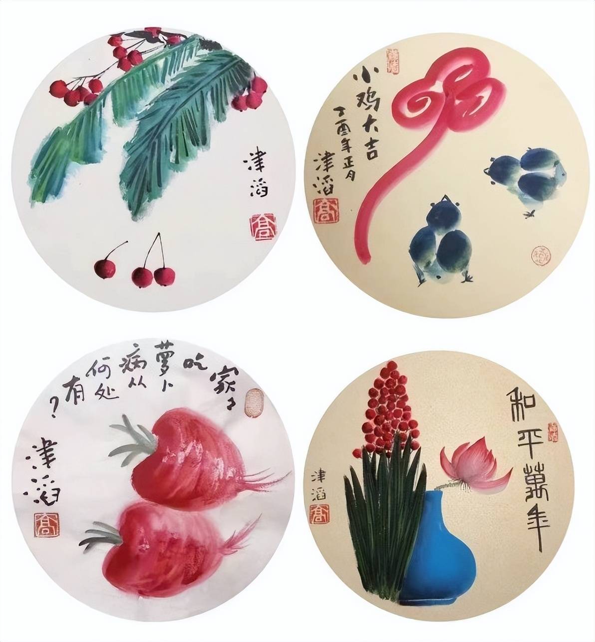 高津滔先生以其精湛的艺术造诣,获得市场的高度认可,在2010青岛成名翰墨第八届中国书画专场拍卖会上,他的作品《家和万事兴》、《听雨》、《菩提叶》分别拍出11.2万元、12.960万元、10.9760万元,其佳作《笑容》更是拍出32.48万元。